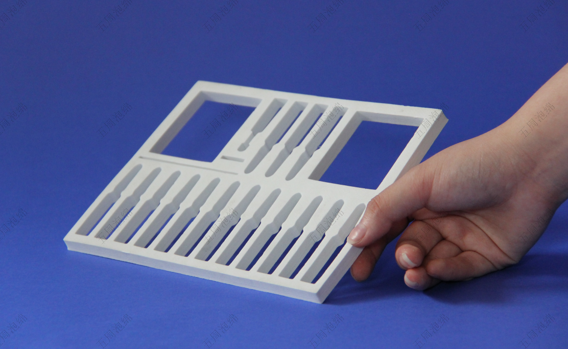 防靜電需求必須認準表面電阻值10^6-10^9Ω的導(dǎo)電型EVA,避免普通款引發(fā)電子元件損傷。異形包裝需注意回彈率指標>85%,防止長期受壓變形。選型時建議做跌落測試:用待包裝物重量1.2倍的砝碼進行1米自由落體實驗,內(nèi)襯壓縮量<15%方為合格。
