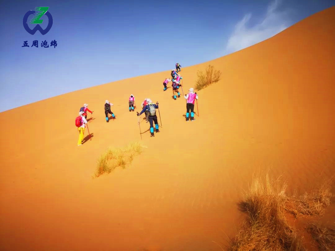 在茫茫戈壁和灼灼黃沙里,五周泡綿周磊總經(jīng)理表示每一次體驗都是生命的升華,每一次行走都是自我的超越。徒步愛好者沿酒泉漠北古戰(zhàn)場,穿越黑戈壁、沙地、丘陵、雅丹地貌,途經(jīng)火石峽烽燧、天羅城等歷史文化遺址,用雙腳丈量歷史,在行走中感悟人生。