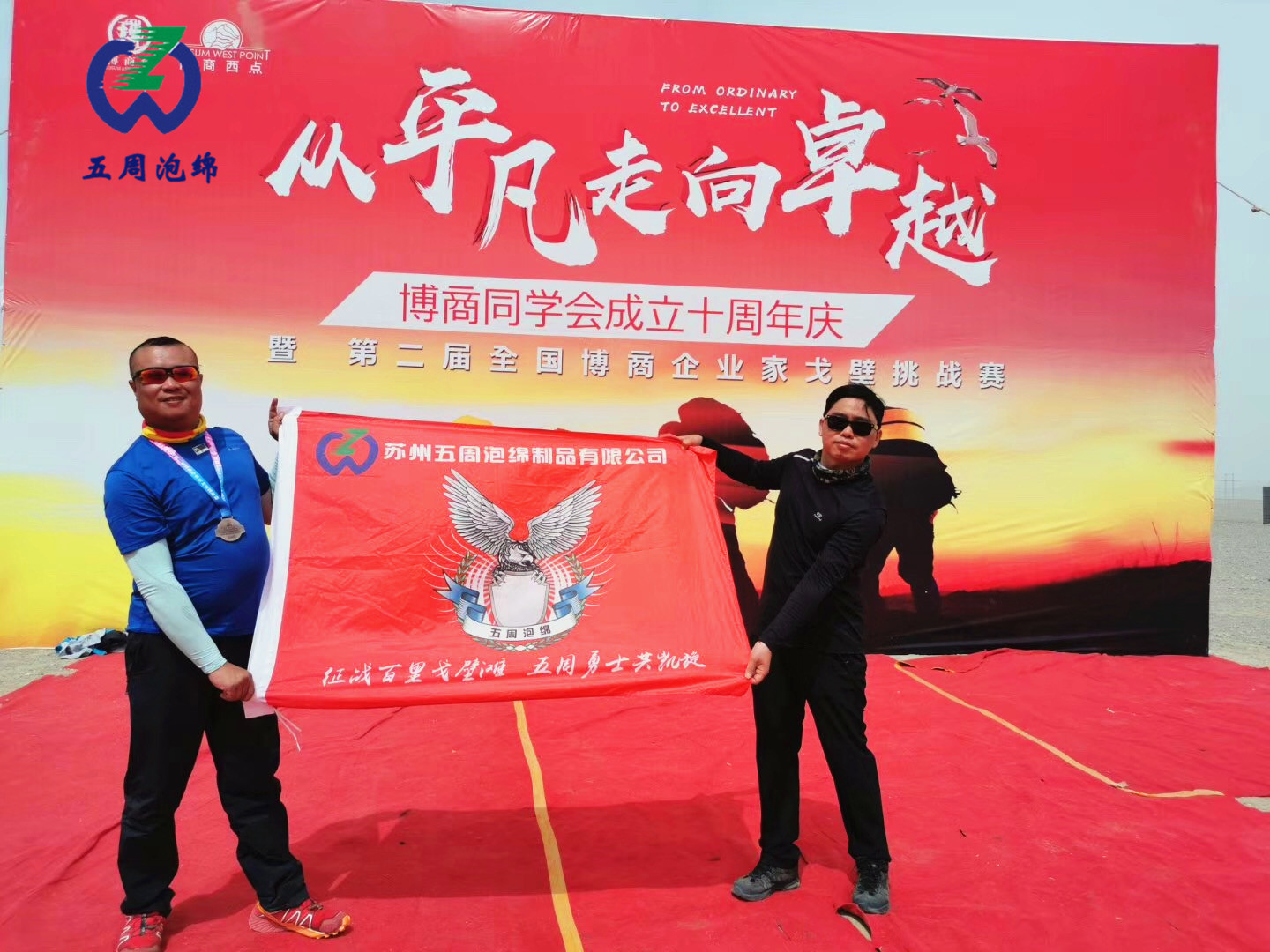 熱烈祝賀蘇州五周泡綿制品有限公司總經(jīng)理周磊參加[第二屆博商企業(yè)家戈壁徒步挑戰(zhàn)賽]取得圓滿成功!